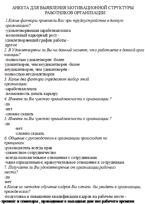 Анализ системы мотивации труда