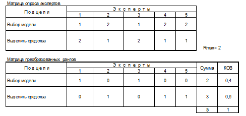 содержащие два уровня подцелей. Далее необходимо рассчитать КОВ всех подцелей
