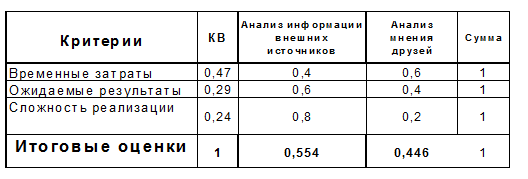 (финансовые, временные и другие ресурсы) и выбираем единственный окончательный