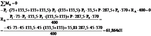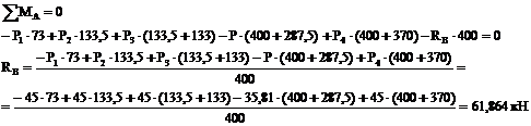 P1·(0,073+0,1335)+R1·0,1335=-45·(0,073+0,1335)+ +82,33·0,1335=1,7 кН·м= - P1·(0,073+0,1335+0,133)+R1·(0,1335+0,133) - P1·0,133=