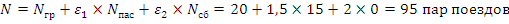 пересчитать данные в задании размеры движения поездов в число пар поездов