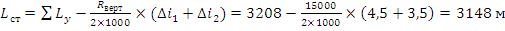 приёмоотправочных путей равна 2500 м, что меньше Lст = 3148