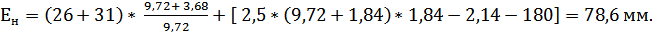 26+31+ 0 = 57 мм;B= 26+31+[2,5*(9,72-4,86)*4,86+2,14 - 180]= 57 мм;