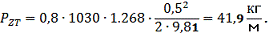 45°C;- вертикальная составляющая силы давления от течения, кг/м,