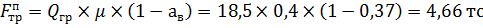 усилие, воспринимаемое креплением, записывается так:
