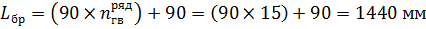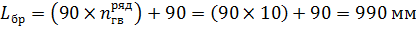 рядами расстояние тоже 90 мм. Таким образом, длина бруска считается так: