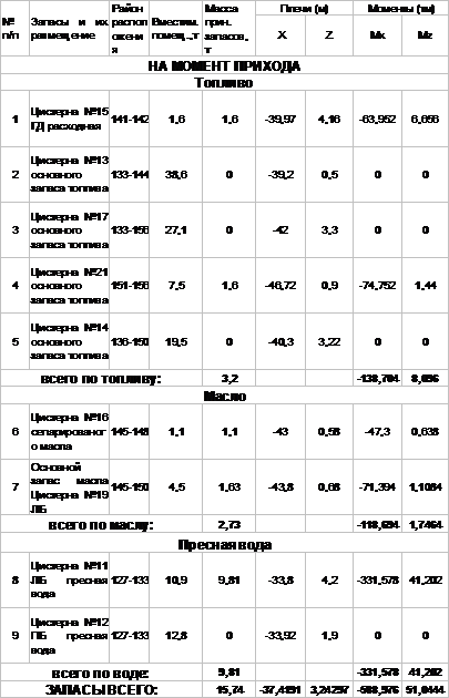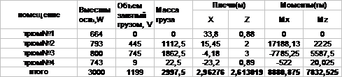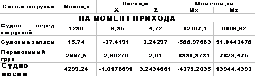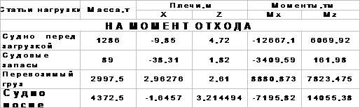 В таблице 4.1 представлен расчет суммы моментов масс дедвейта
