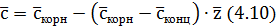 Расстояние от условной оси до линии ц.т. топлива в корневом и концевом