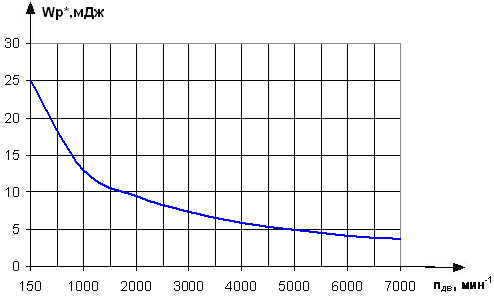 - зависимость энергии искрового разряда Wp от частоты вращения коленчатого вала двигателя nдв.