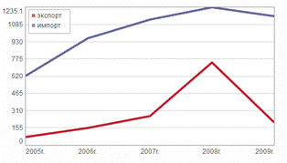 Рисунок 2- Торговый оборот России и Аргентины, 2005-2009гг., млн. тонн