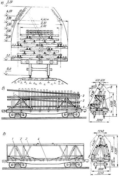 горизонтальном положении (рис. 6а). На четырехосную платформу грузоподъемностью