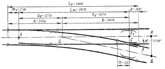 поперечном направлении строго симметрично, то от переводных брусьев длиной