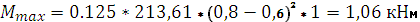 максимальний згинальний момент:c - під зовнішню стіну = 0,6