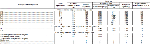 стрелочных переводов Р-65 1/9; Р-65 1/11