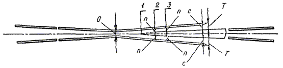 состава в местах пересечения внутренних рельсовых нитей двух путей, сходящихся