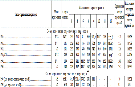 прямолинейных стрелочных переводов в странах бывшего СССР наиболее типичны и