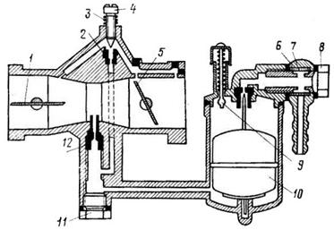 и поплавка с рычагом, находящегося внутри бака. При уменьшении уровня топлива
