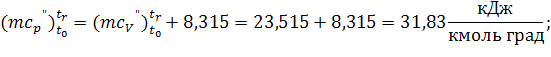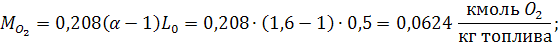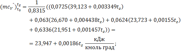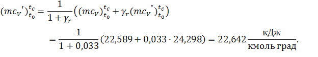 Количество отдельных компонентов продуктов сгорания (1/стр.51):