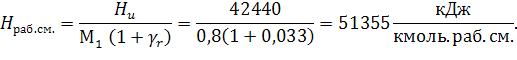 + 125,6·0,126 - 10,89·0,004 - 2,51·9·0,126 = 42,44 МДж/кг =42440 кДж/кг.