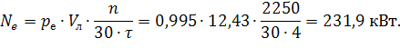 автомобилей. Эффективная мощность дизельного двигателя Ne=232 кВт при частоте вращения