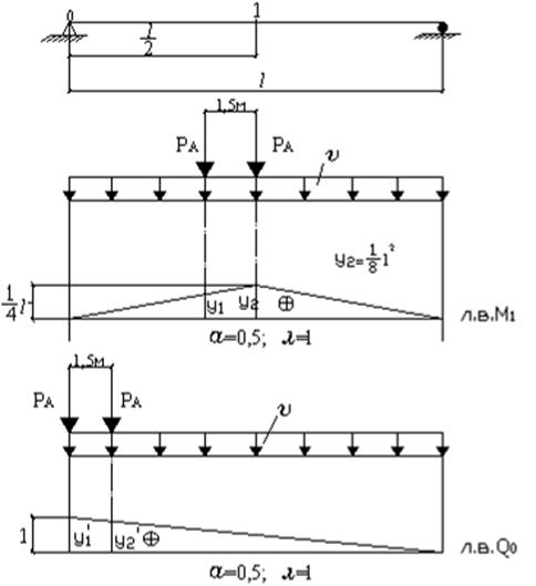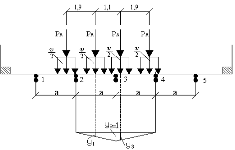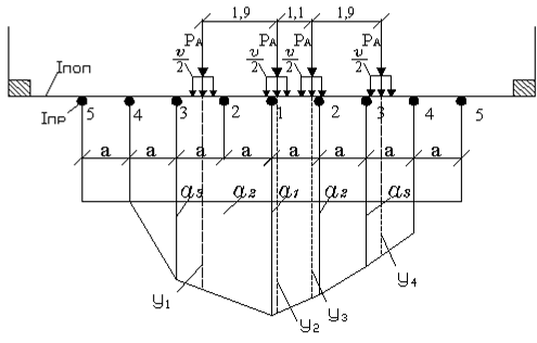 моста, загружают постоянной и временной нагрузками линию влияния давления, вид