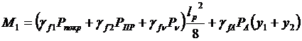 изгибающий момент в середине пролета (сеч. 1) прогона (балки)