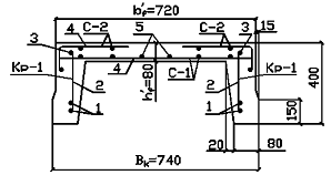 Высоту плиты назначим h = 400 мм, толщину полки