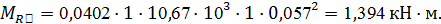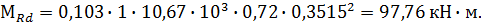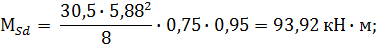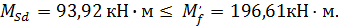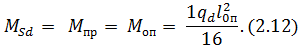 Величины изгибающих моментов сечений