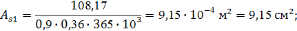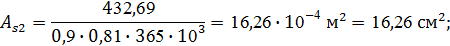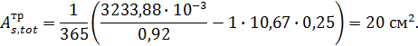 площадь арматуры определим по формулам: