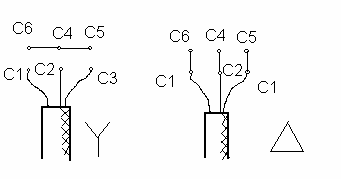 соединённой звездой и 3 свободных конца припаеваются к 3м медным контактным