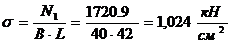равномерно распределенной нагрузкой. Интенсивность погонной нагрузки qт =σ×B/2 = 1,02×40/2 = 20,4 кН/см.