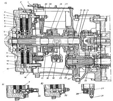 муфта сцепления; б - устройство тормозка