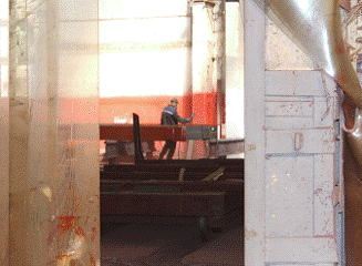 из двух пролётов. Тут находится участок сверления отверстий в профилях