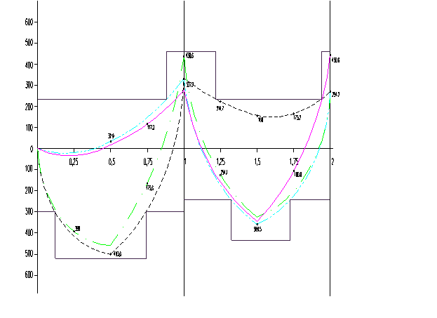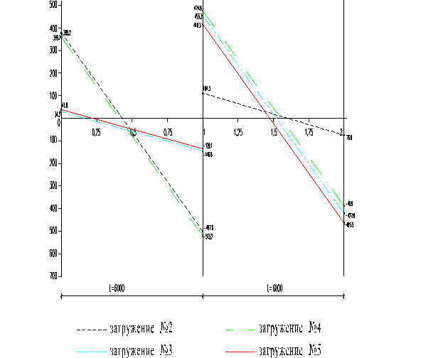Огибающая эпюра изгибающих моментов строится для двух схем загружения. В