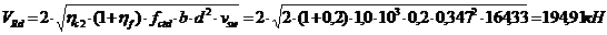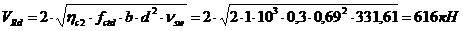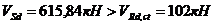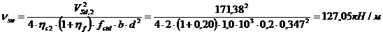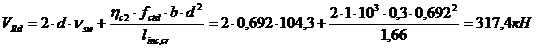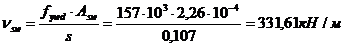 fywd = 157 МПа. Наибольшая поперечная сила на участке: Vsd,4=V2,r=V3=0,5·q·lsb=0,5·50,11·5,7=142,81 кН;