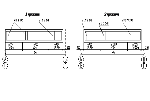 поперечного армирования крайнего и среднего пролетов второстепенной балки