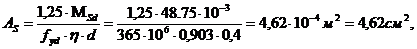 В крайнем пролете обрывается 2 стержня Ø 20 мм и остается 2 стержня Ø 20 мм, Аs