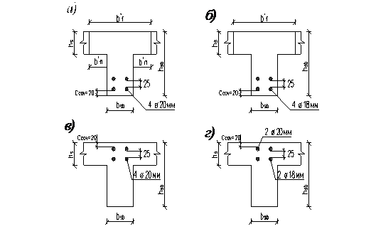 На средних промежуточных опорах обрывается 2 стержня Ø18 мм, остается 2 стержня Ø20 мм, поэтому несущая способность сечения такая же, как