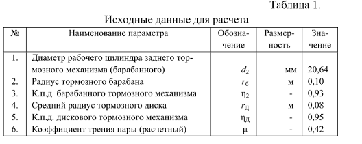 остальных параметрах. Тормозная сила на колесе, развиваемая барабанным
