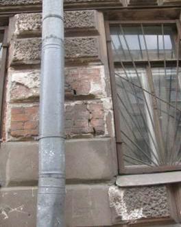 обрушением, трещины, отслоение штукатурного слоя с последующим ремонтом