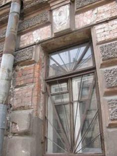 здания - 2 шт.). В цоколе 11 окон, заделанных металлическими листами.