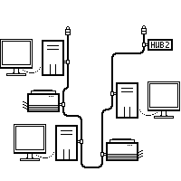 подключать компьютеры напрямую. Для соединения хабов между собой один из его