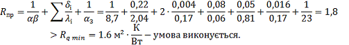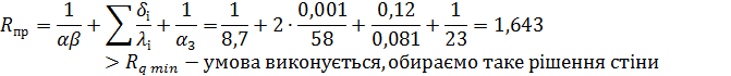внутрішніх поверхонь приміщень, який визначається за таблицею Л7 дорівнює 1,7;