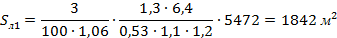 - площа ліхтарів, м2 ;