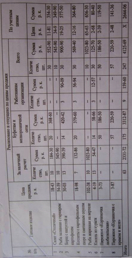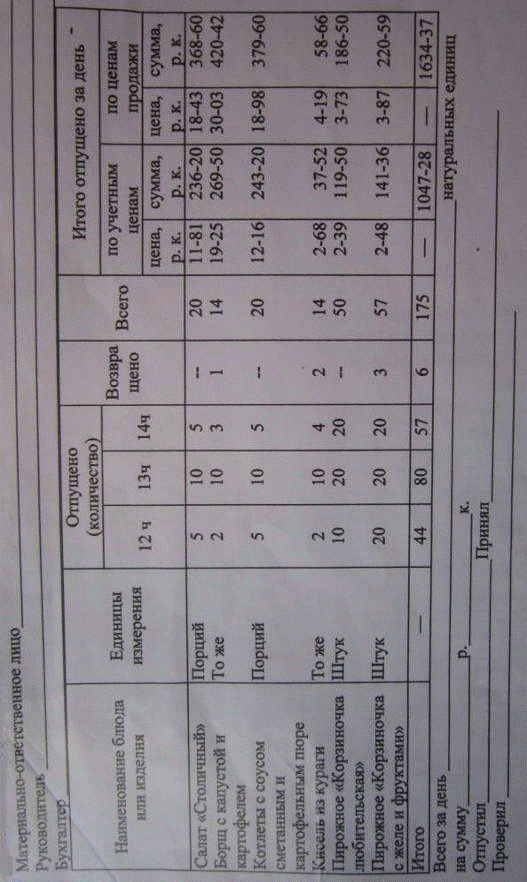 изделий и снабжения ими других предприятий общественного питания и предприятий