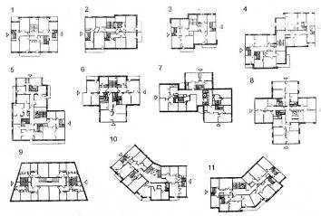 Объемно-планировочная структура основных типов секционных жилых зданий
