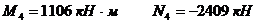 N - момент и нормальные силы, действующие в уровне верхнего обреза фундамента,