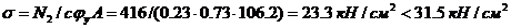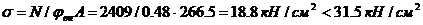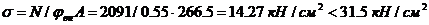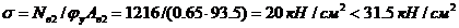 Давление со стропильной фермы N = 505 кН. Торец плиты оголовка назначаем 20 мм.