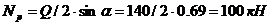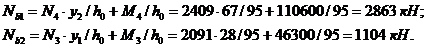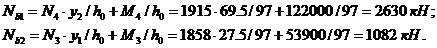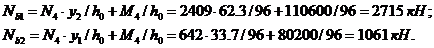 Nп = N/2 + M/hв = 416/2 + 50400/50 = 1216 кН.