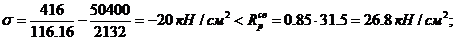 Среднее напряжение в бетоне под плитой:
